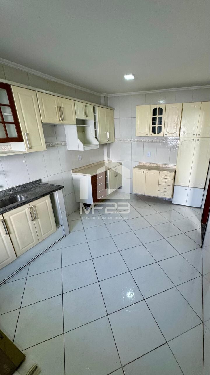 Cozinha espaçosa com possibilidade de integrar uma mesa de jantar.